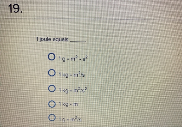 Solved 19 1 Joule Equals 1 G M2 S2 9 0 1 Kg M S2 1kg M Chegg Com